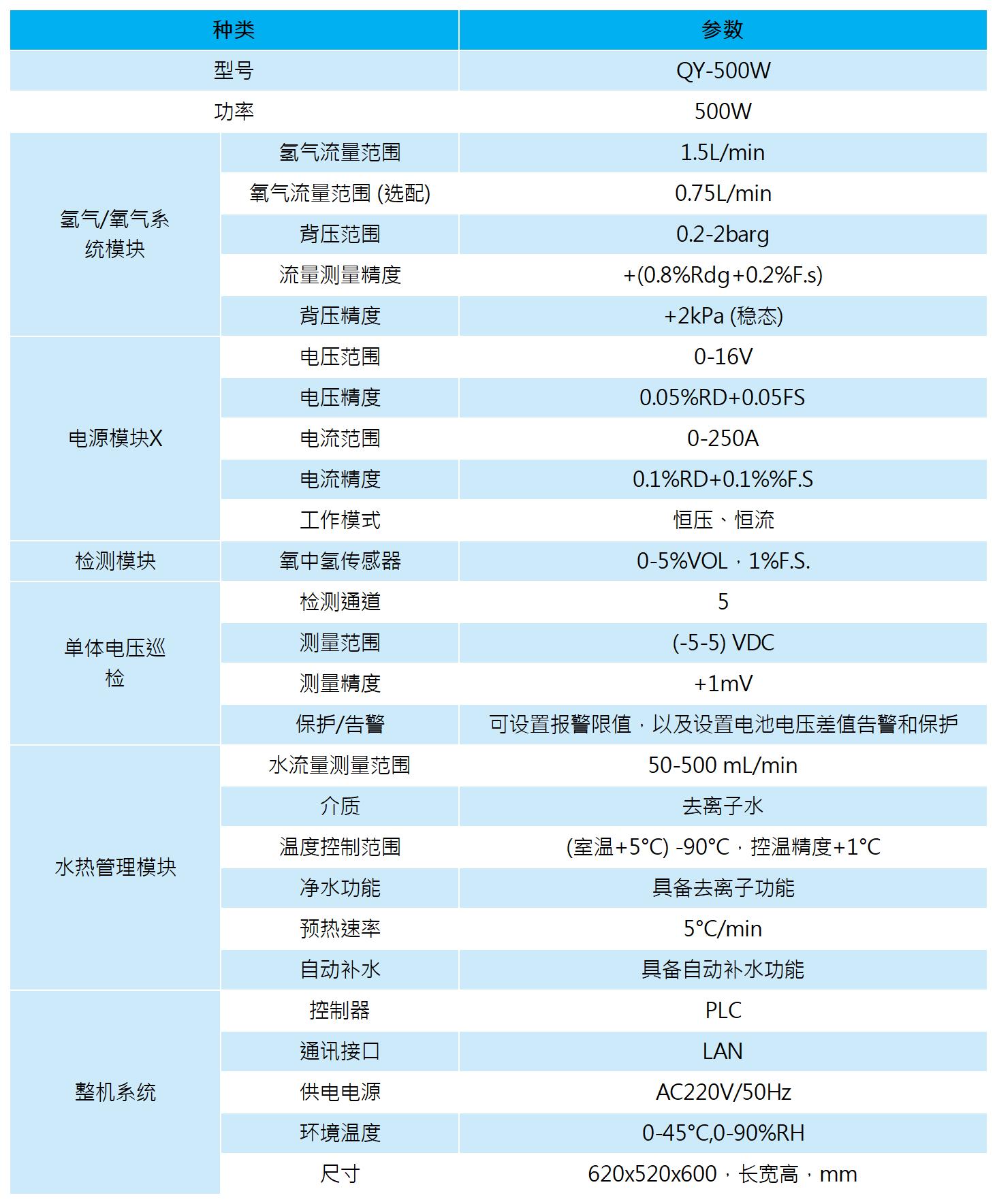 QY-500開發(fā)旨在為PEM電解槽提供一個精確、可靠的測試平臺。 PEM(AEM)電解池測試系統(tǒng)可按照用戶操作條件實現(xiàn)PEM(AEM)電解池的性能測試、敏感性測試、部件選型、壽命評估和理論基礎(chǔ)研究等功能。通過操作軟件實時控制、監(jiān)測并顯示PEM(AEM)電解池運(yùn)行過程中的各種參數(shù)和工作狀態(tài),包括水的溫度、壓力、流量,電壓、電流,冷卻水溫度、產(chǎn)生氫氣的溫度、壓力、露點(diǎn)、純度等參數(shù),來實現(xiàn)PEM(AEM)電解池在各種不同的工況下的工作。